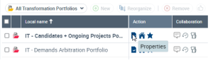 4. In the list, display the project portfolio concerned and in the corresponding Action column, click Properties.