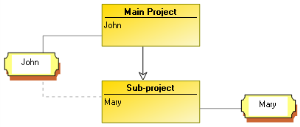 When the writing access area at creation has been created, it is represented by a dotted line link between the person and the writing access area in the writing access diagram.