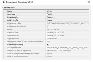 • Date of last private workspace cleanup and Date of last consolidation (RDBMS specific), which provide useful information for the maintenance plan of an RDBMS repository.