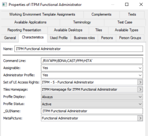 Example: In the Characteristics page, set the Assignable parameter to “Yes”, connect a Tiles Homepage.