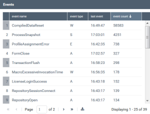 For example in the Events page, click the "MacroExcessiveInvocationTime" event. All of the "MacroExcessiveInvocationTime" events that occured are displayed.