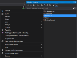 1) Set Hosting.IIS and TestingConsole as starting projects.