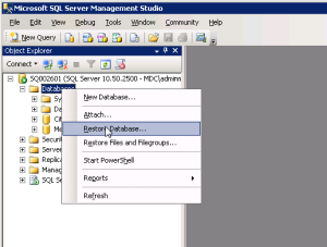 3. Right-click Databases, and select Restore Database.