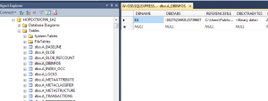 2. Using SQL Server Management Studio, open database “HOPEX750CP06_EA2”, and edit the table “dbo.A_DBINFOS”: