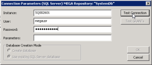 Now you have to connect to the environment, and add the HOPEX repositories. The first time you connect, you receive warning message(s) telling you that database “X” (“X” being the name of the repository that existed in the source environment, and most likely one of the repositories you are trying to attach) is not referenced.