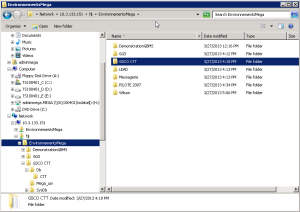 In this example, the environments on the target server are hosted on the server with 10.3.133.151 IP address, and on that server the environments are located on the F drive in the “EnvironnementsMega” folder, so that the syntax is: