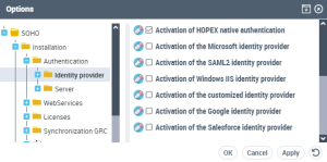 If you have no standard authentication system in your enterprise, you can use the authentication system managed within HOPEX.
