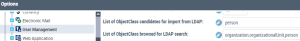 3. (Optional) In the right pane, modify the List of ObjectClass candidates for import from LDAP option.