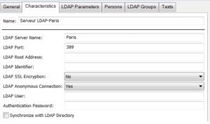 • LDAP User: enter the identifier of the LDAP user used for LDAP directory connection. If connection is anonymous, this field should not be completed.