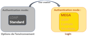 In "Standard" authentication mode, HOPEX (Web Front-End) provides the MEGA authentication mode (by default): the HOPEX authentication service checks that the password entered matches the password stored in HOPEX repository.