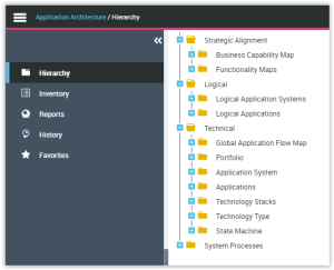 • The Strategic Alignment folder enables the definition of Business capability maps and Functionality Maps in order to prepare for the transformation of your enterprise.