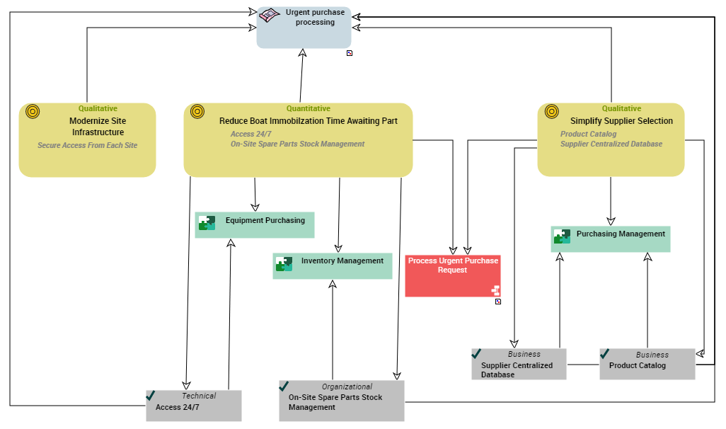 In our example, the development of an application supporting the processing of urgent purchase requests has several objectives: