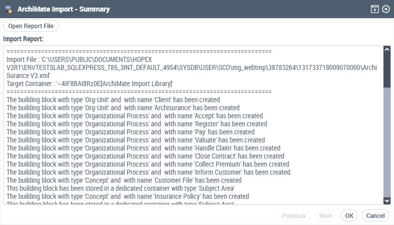 ArchiMate® design can be serialized into an xml file that supports the standard objects and diagrams. The HOPEX for the ArchiMate® Framework import aims at importing ArchiMate® Models from files so that architectures modeled in other ArchiMate® modeling tools can be reused by HOPEX.