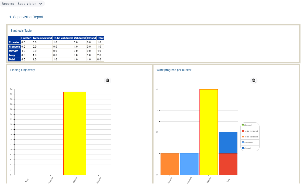 He/she can then monitor their work and assure audit follow-up. To simplify the task, reports enabling audit check are available on each audit.