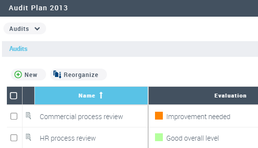 You can sort audits based on this criterion, allowing you to create audits on appropriate entities, risks and processes.