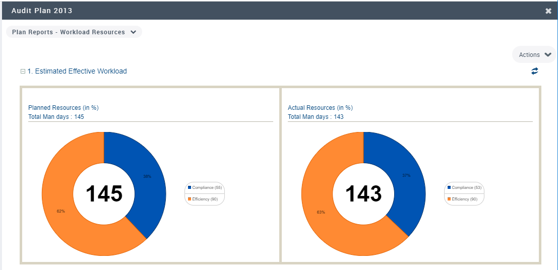 This report compares planned/effective resources and workload for compliance and efficiency audits.