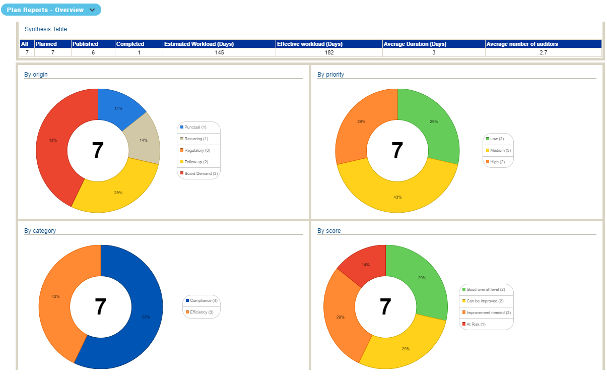 HOPEX Internal Audit enables follow-up of audit plans according to different criteria.