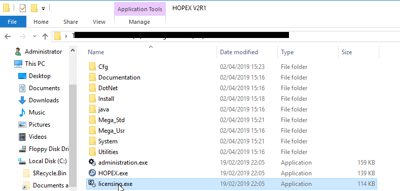 2. Go to the installation folder of Mega, and launch the « licensing.exe » tool: