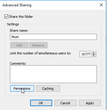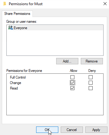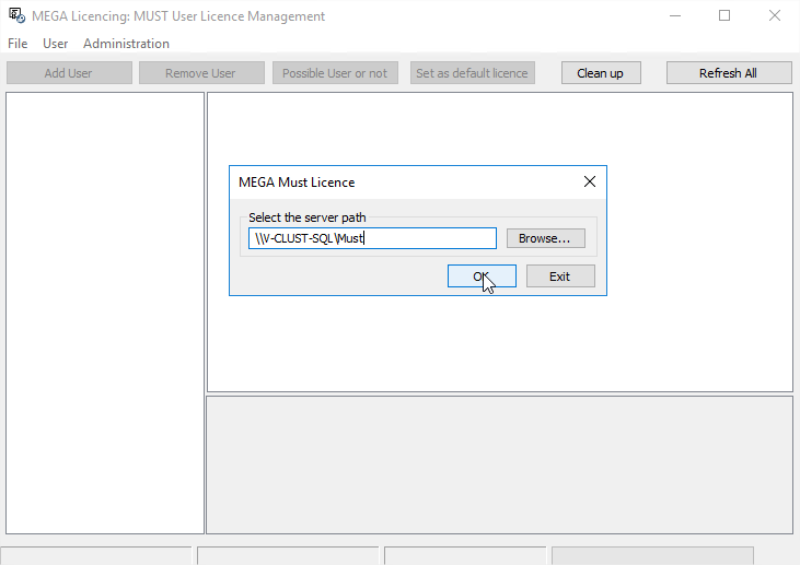 3. Enter the UNC path and click OK. In our case, it is \\V-CLUST-SQL\Must: