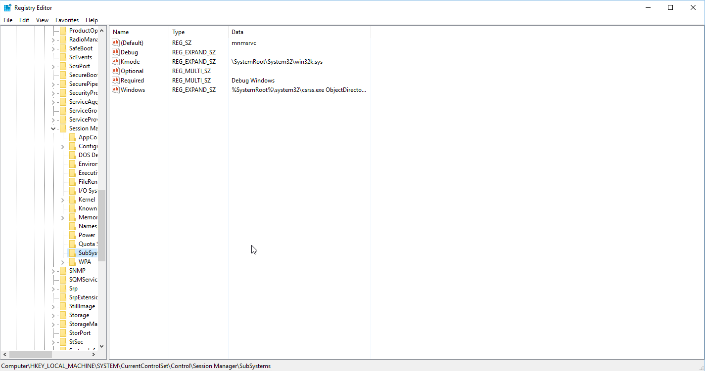HKEY_LOCAL_MACHINE\SYSTEM\CurrentControlSet\Control\Session Manager\SubSystems