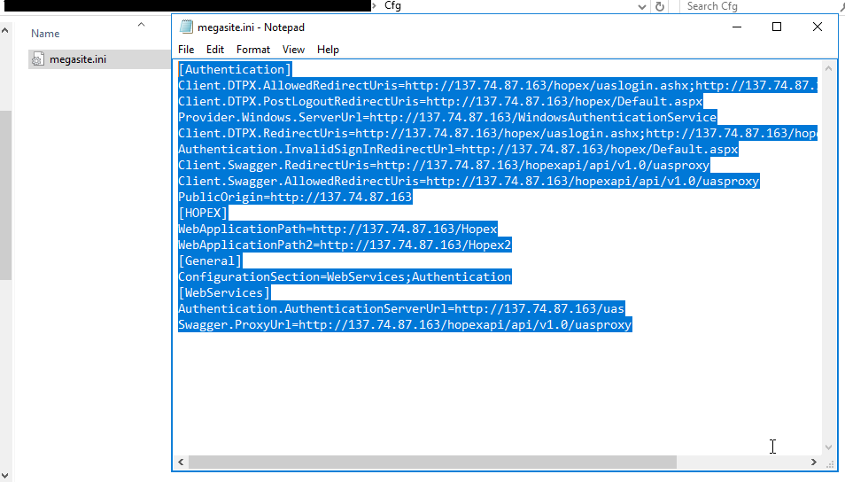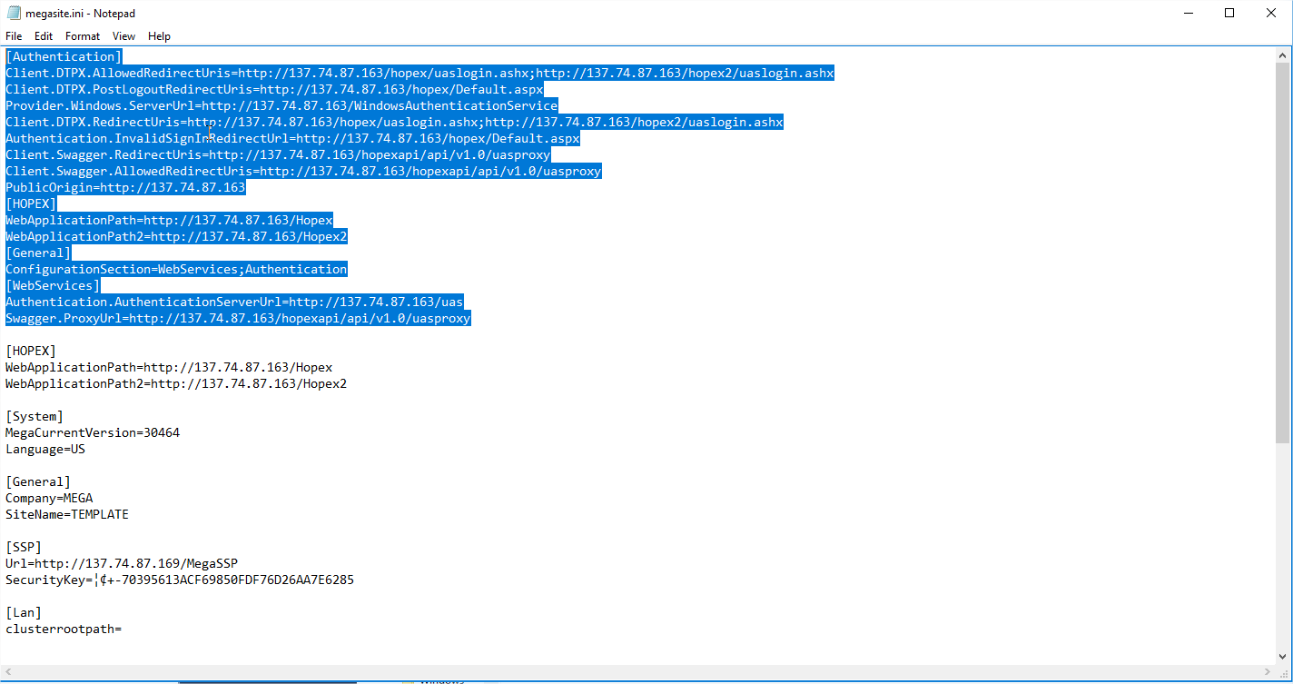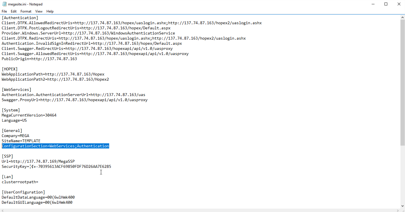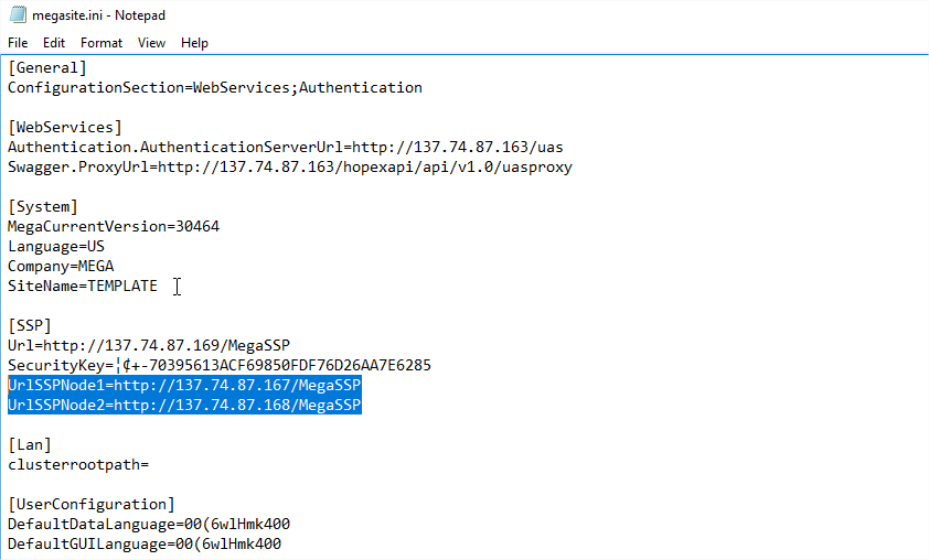 So we connect on one of the Web servers, and edit the “MegaSite.ini” file: