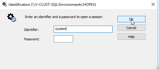 1. Connect to the environment (click the + in front of the environment name), with the « system » account :