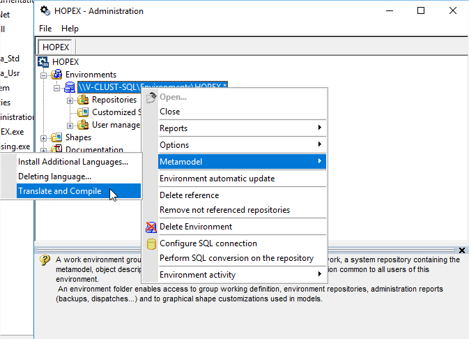 2. Right-click he environment, and select Metamodel >Translate and Compile: