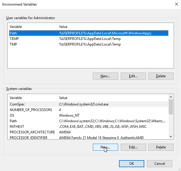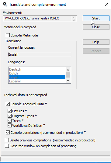 You can see a star at the end of the environment name, showing that some compilation is missing. This is normal, as technical data is not compiled at creation: