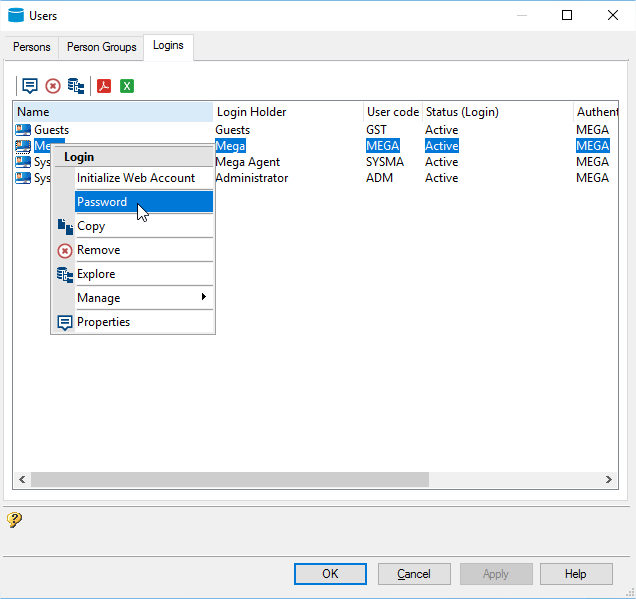 - “Mega” account (no password) allowing to connect to the rich client and the web client, with basic assignments.