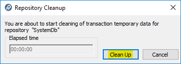 5. This opens up the following window, where you have to click « Clean Up », which will have the effect of creating a stored procedure in the SQL Server related database, and to execute it at once :