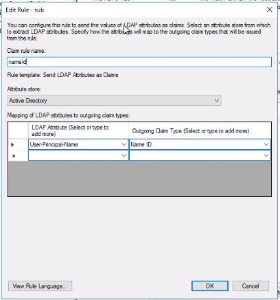 4. In the Claim rule name field, enter the name “nameid”.