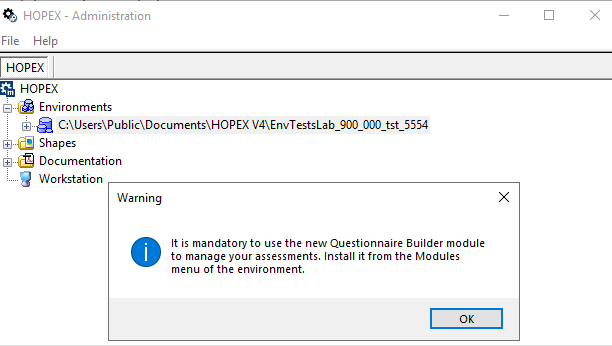 A message indicates you have to install the Questionnaire Builder module to manage your assessments.