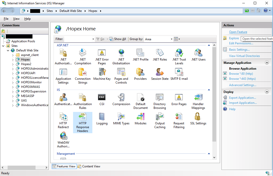 6. In the “Internet Information Services (IIS) Manager”, expand HOPEX.