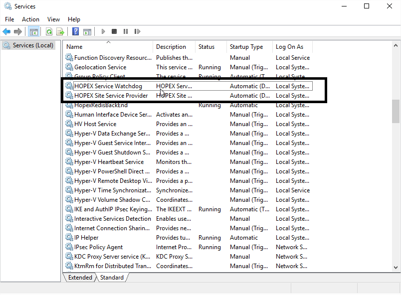 You should first check that the “HOPEX Site Service Provider”, and the “HOPEX Service Watchdog”, are running using the Services administration tool:
