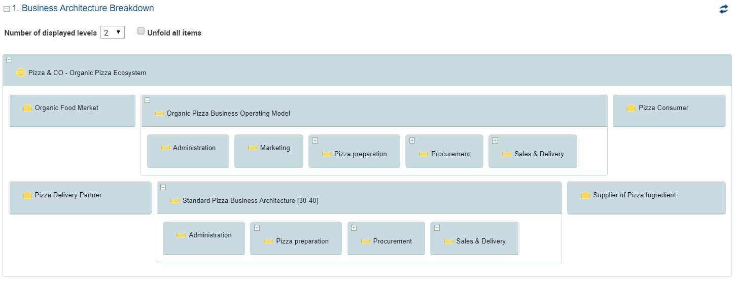 Based on the same principle as the breakdown report for business capabilities, this report presents the breakdown of a business function architecture environment with respect to its components.