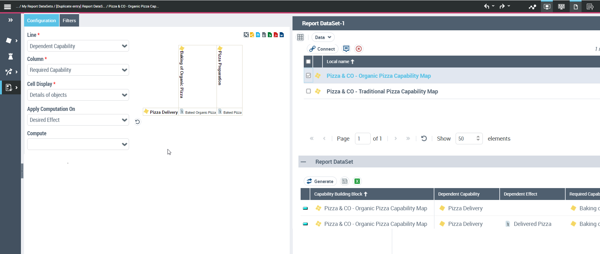 A DataSet report is a data table (based on repository objects), on which instant reports can be generated.