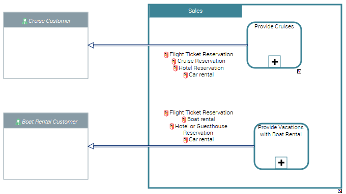 In the example above, the enterprise is targeting two customer segments, those that rent boats, and those to whom cruises are proposed.