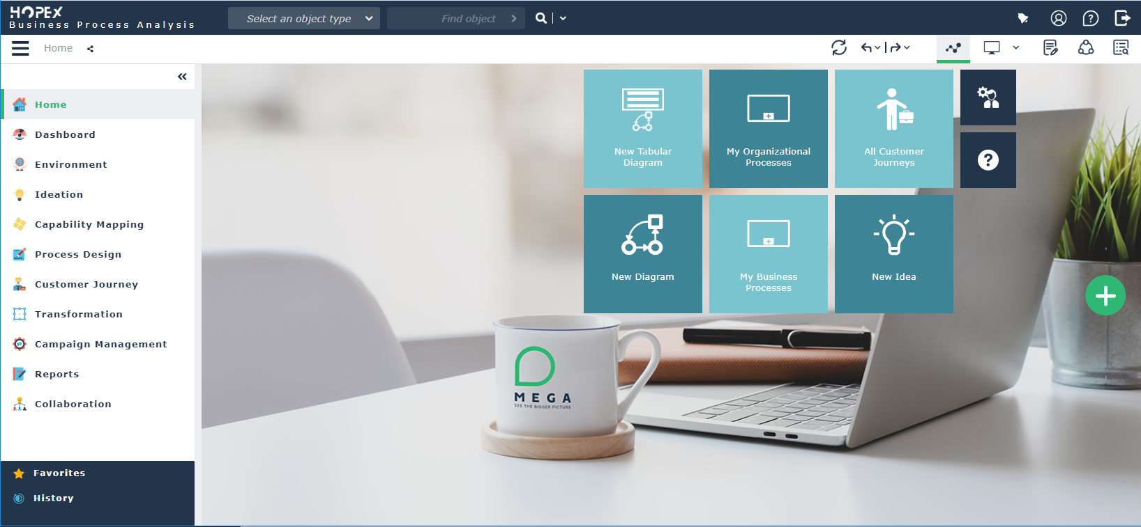 HOPEX Business Process Analysis is mainly intended for web users. Desktops described in this guide are accessible to Web desktop users.