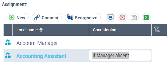 2. In the Assignment section, select the line of the org-unit of which you wish to condition assignment.