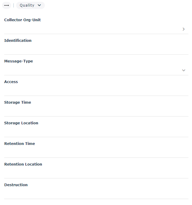 The other fields allow you to enter additional indications for messages of “Quality record” type that are particularly important in documentation of your quality system. Here you can define the controls needed for identification, storage, retention time, etc.