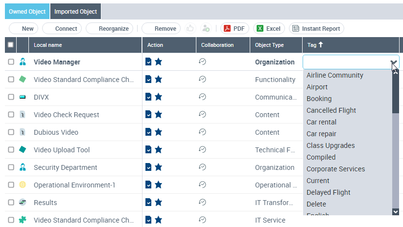 2. Select one or several objects and from the Tag column, select a tag from the available drop-down list.