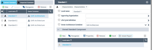 HOPEX DoDAF helps you define standards in a list or in a navigation tree.