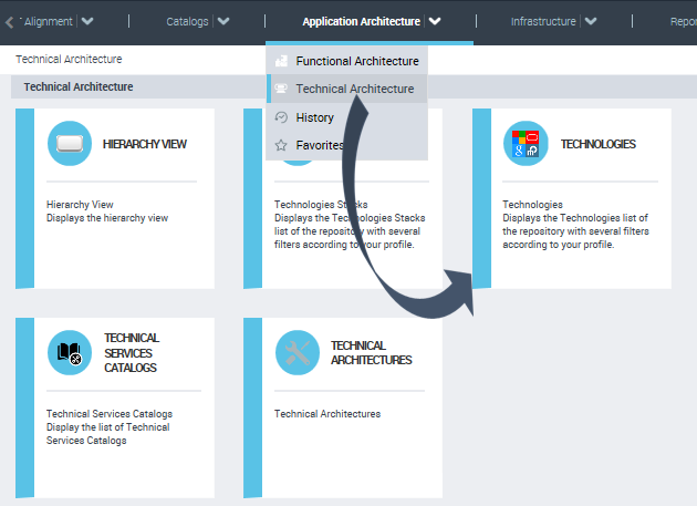 To access Technologies in HOPEX Explorer (tablet):