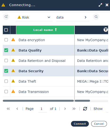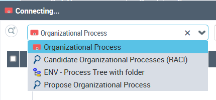 Example: you want to define the scope of an org-unit and connect organizational processes. You may choose to select processes, for example, from a list, a tree, a candidate process query, etc.