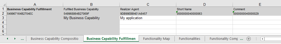 • Some Business Capability Fulfillment by applications in the "Business Capability Fulfillment” worksheet.