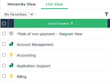 Favorites allows you to quickly access objects consulted regularly. They enable access to all actions possible on these objects. Favorites are useful when your repository is large and you want to save valuable time in navigation.