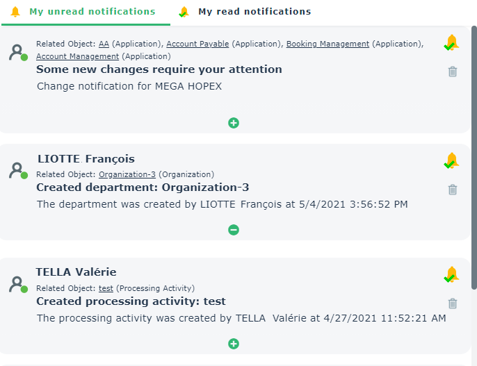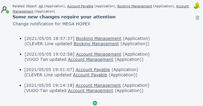 HOPEX desktop, a red dot indicates that you have unread notifications