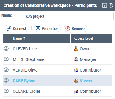 7. Select the person (use [CTRL] key to select several persons) with whom you want to share your work, then click Connect.
