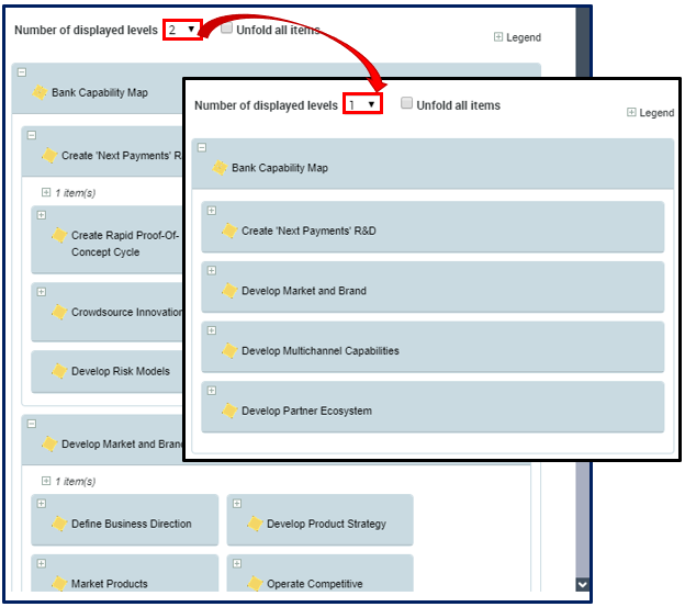 1. To lighten a breakdown map display, in the Number of displayed levels field, select an upper level.