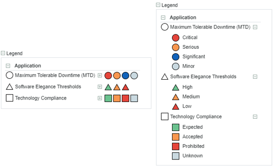• In the Shape column, select the symbol associated with the criterion, or select “Fill Color” to highlight this criterion (adding back ground color to the name of the object).